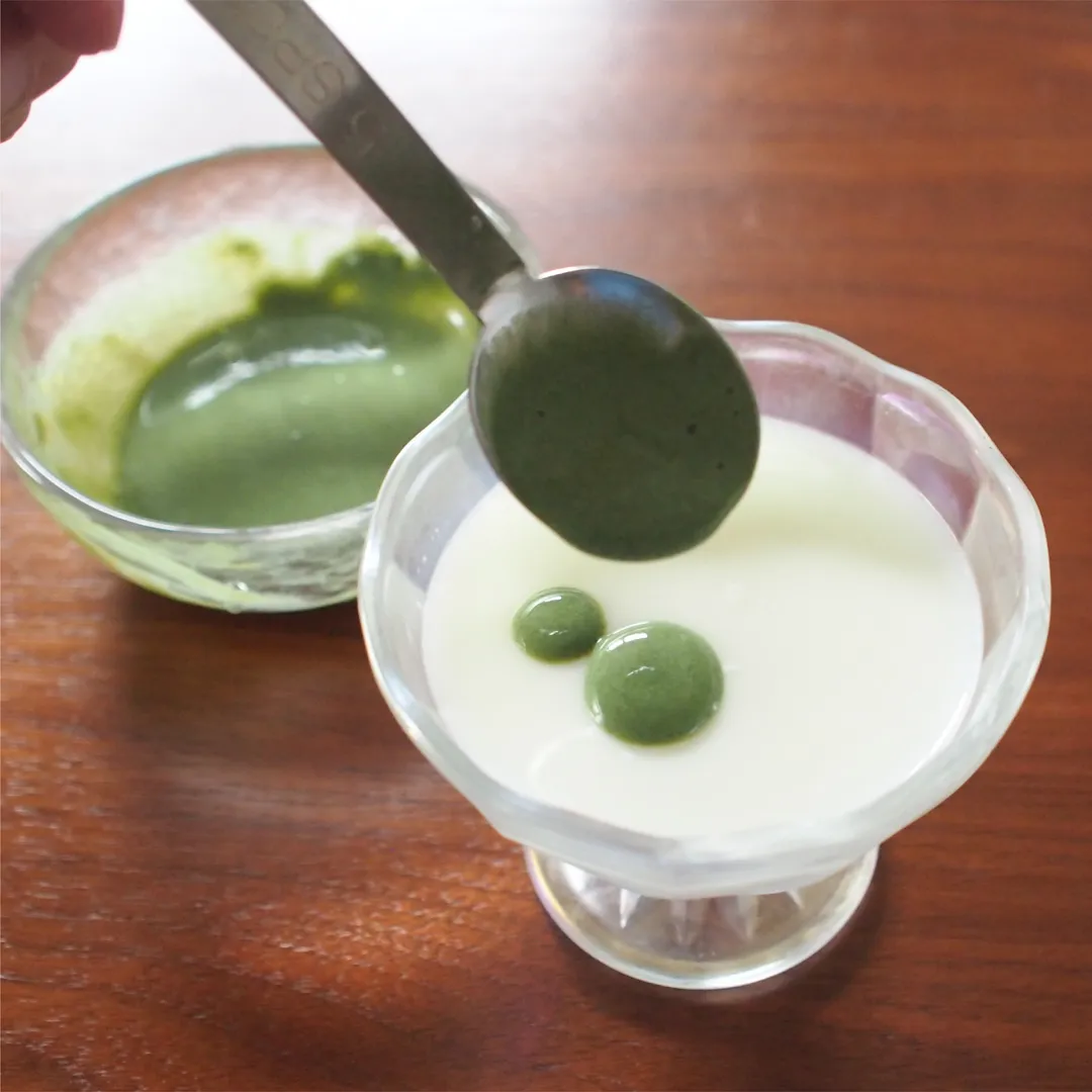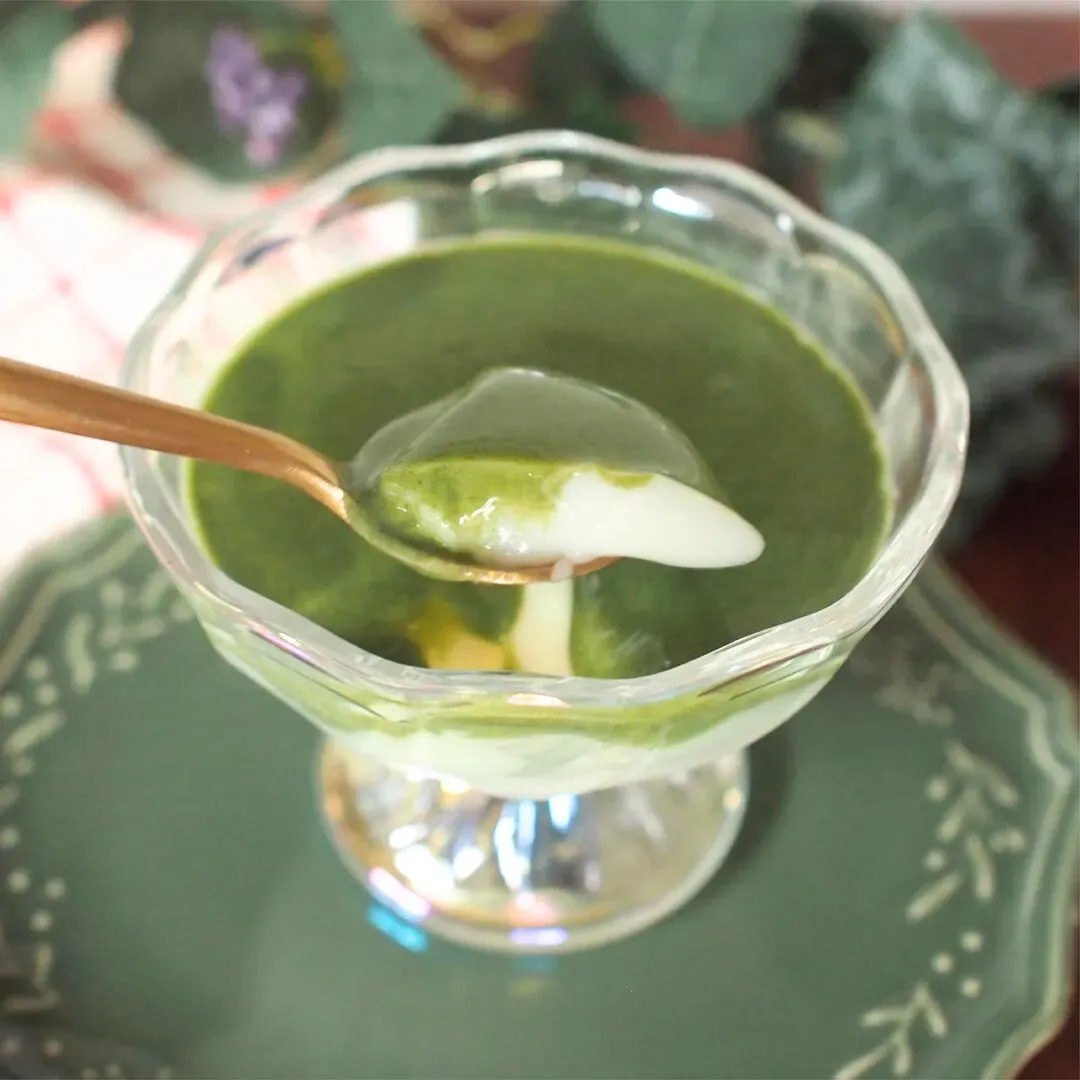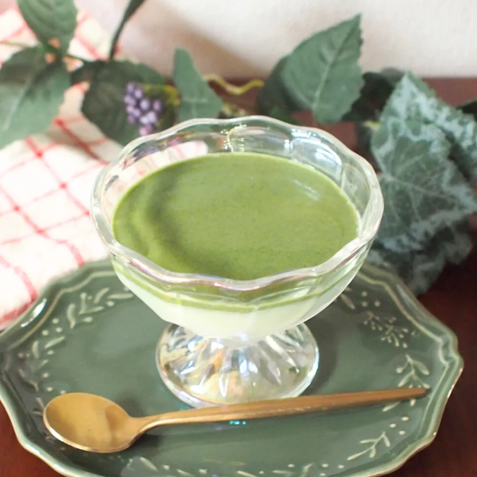 ほんのり苦味のあるケールソースがミルクプリンと相性抜群!