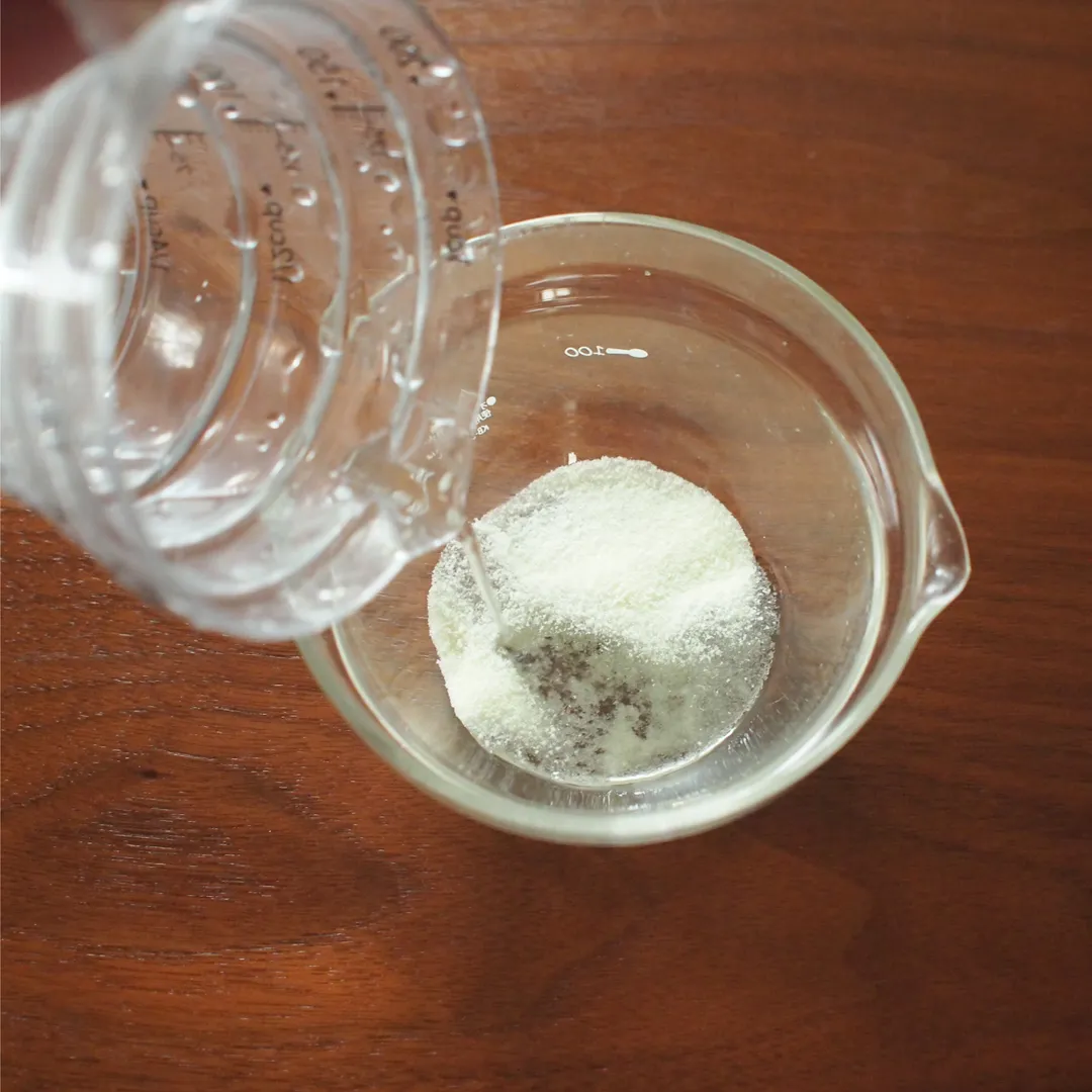別のボウルにケールプロテインピュアルンと水を入れ、よく混ぜてソース状にする。