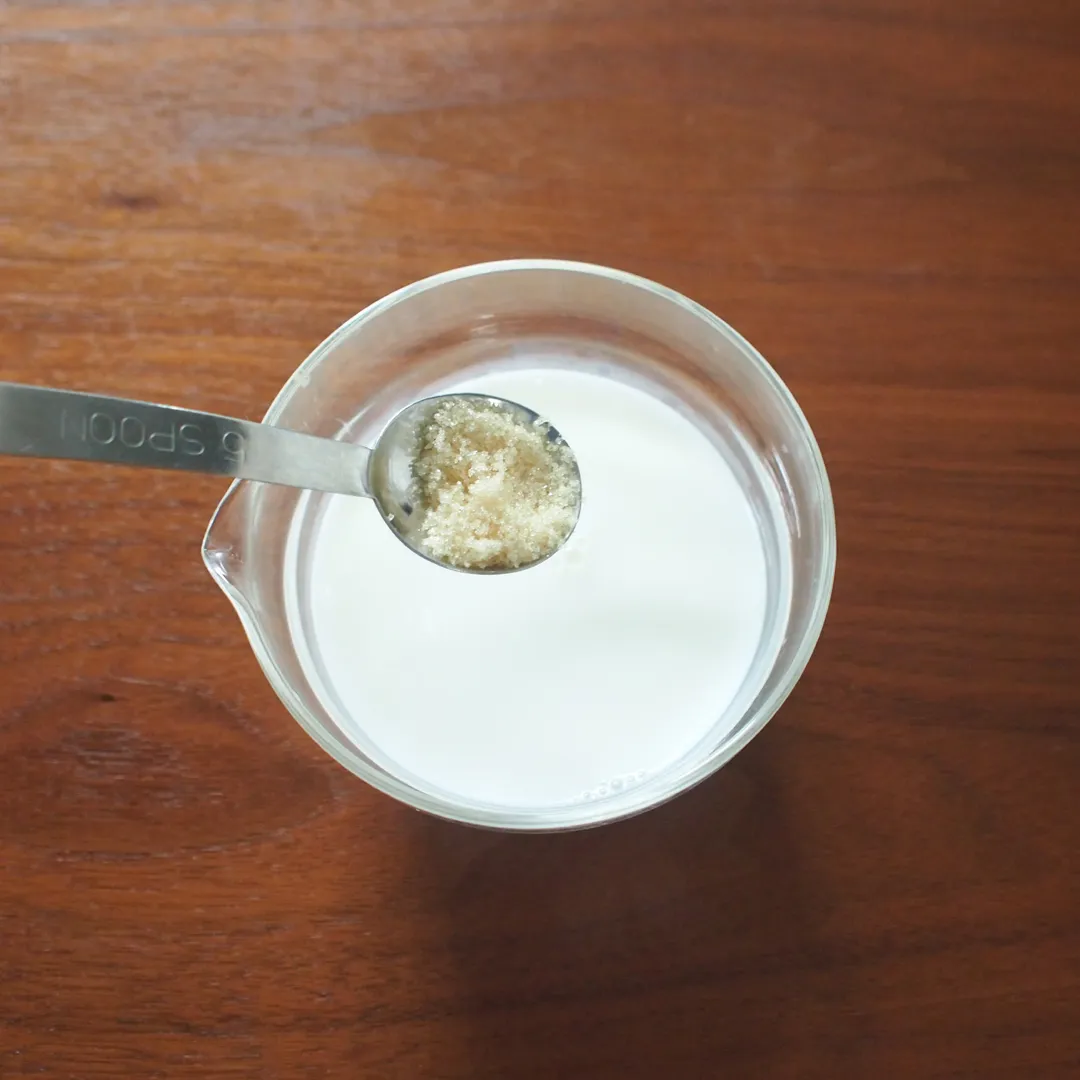- 無調整豆乳or牛乳(今回は牛乳を使用):100ml