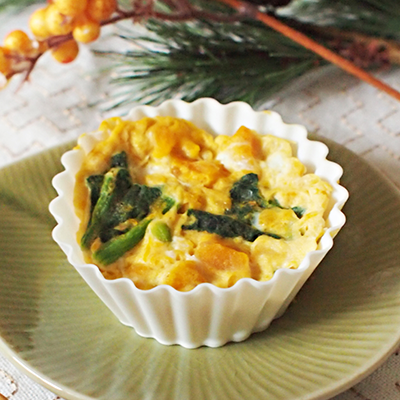 電子レンジで簡単に♪寒い季節でも温かくてほっこりするかぼちゃのキッシュの完成。米ぬかチャージを入れることで香ばしさをプラス。簡単なのでぜひ作ってみてください。