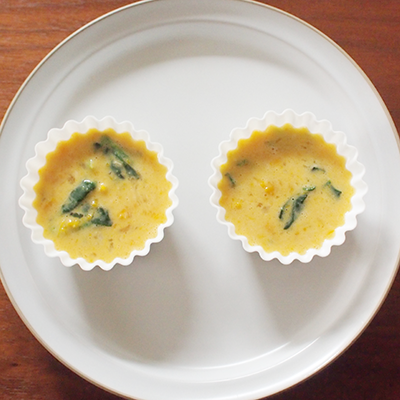 耐熱カップに入れ、ふんわりラップをかけて電子レンジ(600W)で1分30秒加熱する。
