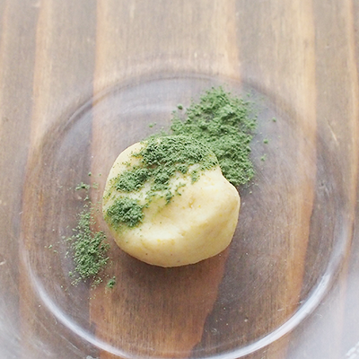 取り分けた生地にほうれん草パウダーを混ぜ合わせる。