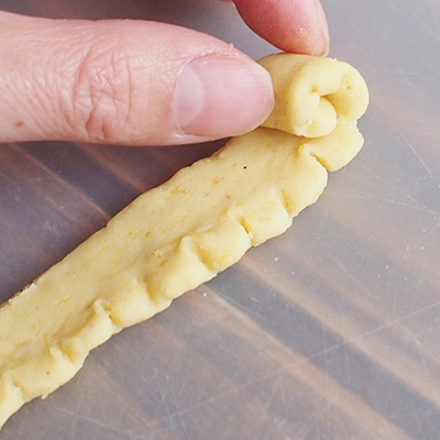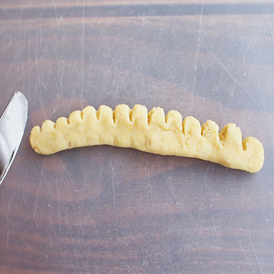 プレーン生地の上部にナイフなどで少し切り込みを入れていく。