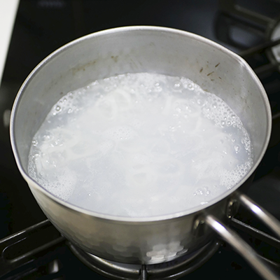 ( 沸騰させた鍋に入れ、弱火で7〜9分茹でる。)