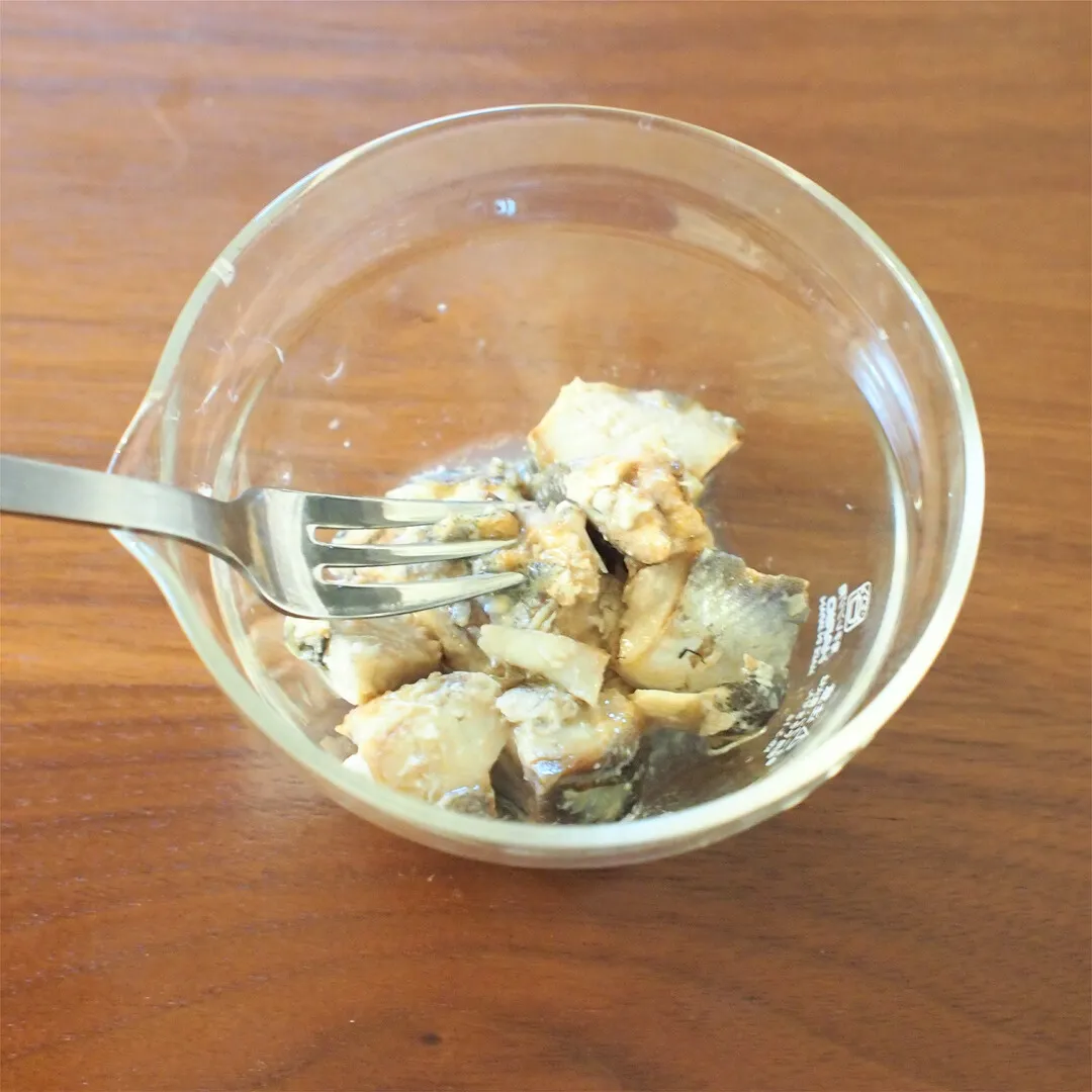 ごろっとおさかなの汁気を切り、軽くほぐす。