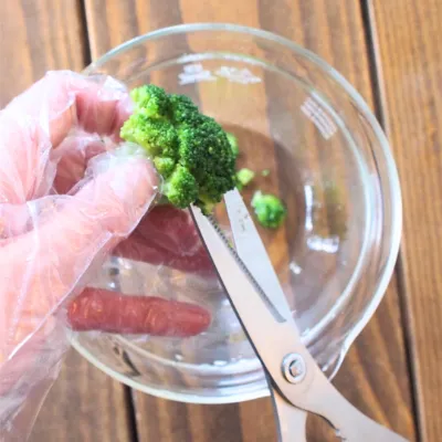 キッチンペーパーなどで軽く水気を拭き取り、調理用バサミで柔らかい穂の部分を切り落とす。