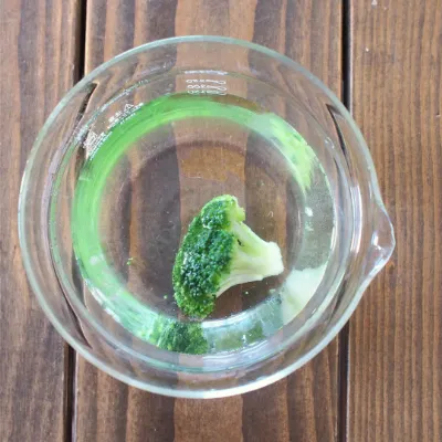 大きめの耐熱容器にブロッコリー全体が浸かる程度の水を入れる。